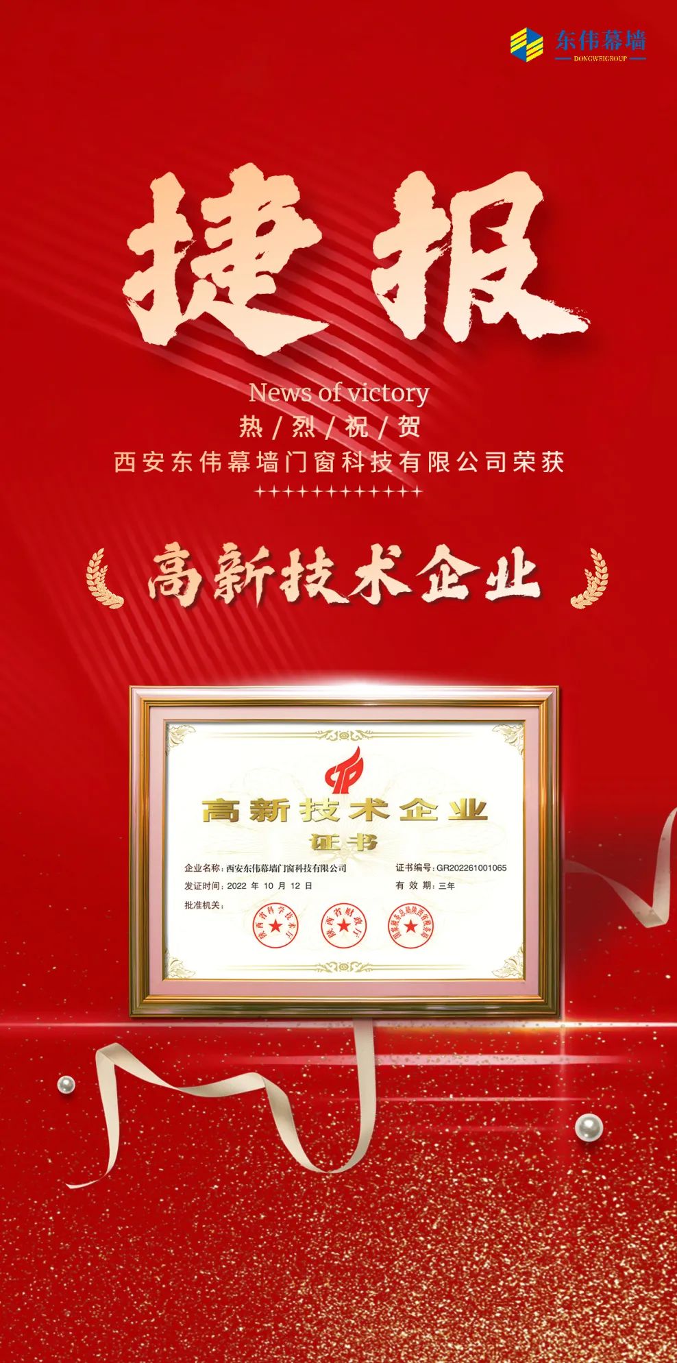 近日,陕西省科学技术厅公布2022年一、二批高新技术企业名单,西安黄瓜视频污污在线观看幕墙门窗科技有限公司(以下简称黄瓜视频污污在线观看幕墙)凭借高质的产品与匠心的服务、先进的生产研发能力,及素派门窗品牌日积月累的市场口碑,荣获“高新技术企业”证书。